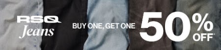 Shop in store and buy one, get one 50% off RSQ jeans for a limited time.