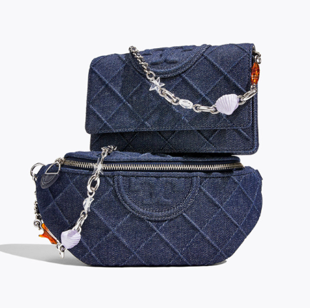 Spring update: Fleming in raw denim with a charm-embellished chain strap. Stop by and shop in store today!